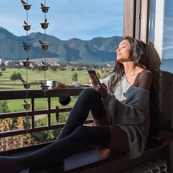 Zelfs op droge dagen verandert een licht briesje deze regenketting in een zachte windgong, met ontspannende geluiden die de sfeer in de buitenlucht verhogen.